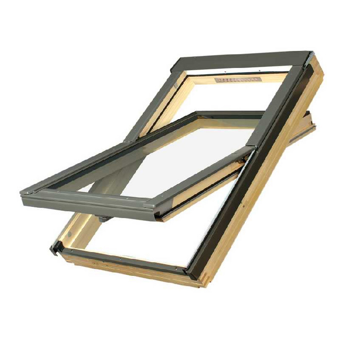 Деревянные мансардные окна со среднеповоротным открыванием FAKRO FTS-V U4 с двухкамерным стеклопакетом. Двухкамерные стеклопакеты в окнах для крыши FAKRO состоят из 3-х закаленных стекол, внешние – с низкоэмиссионным покрытием. Пространства между стеклами в зависимости от модели окна заполнены инертным газом аргоном или криптоном.